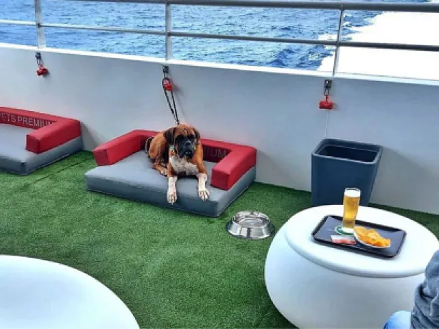 Además, en nuestros salones premium class con terraza, podrás también llevar a tu mascota. En los buques dónde este salón no disponga de terraza, solo podrás llevar a tu mascota en el trasportín en el interior del salón.